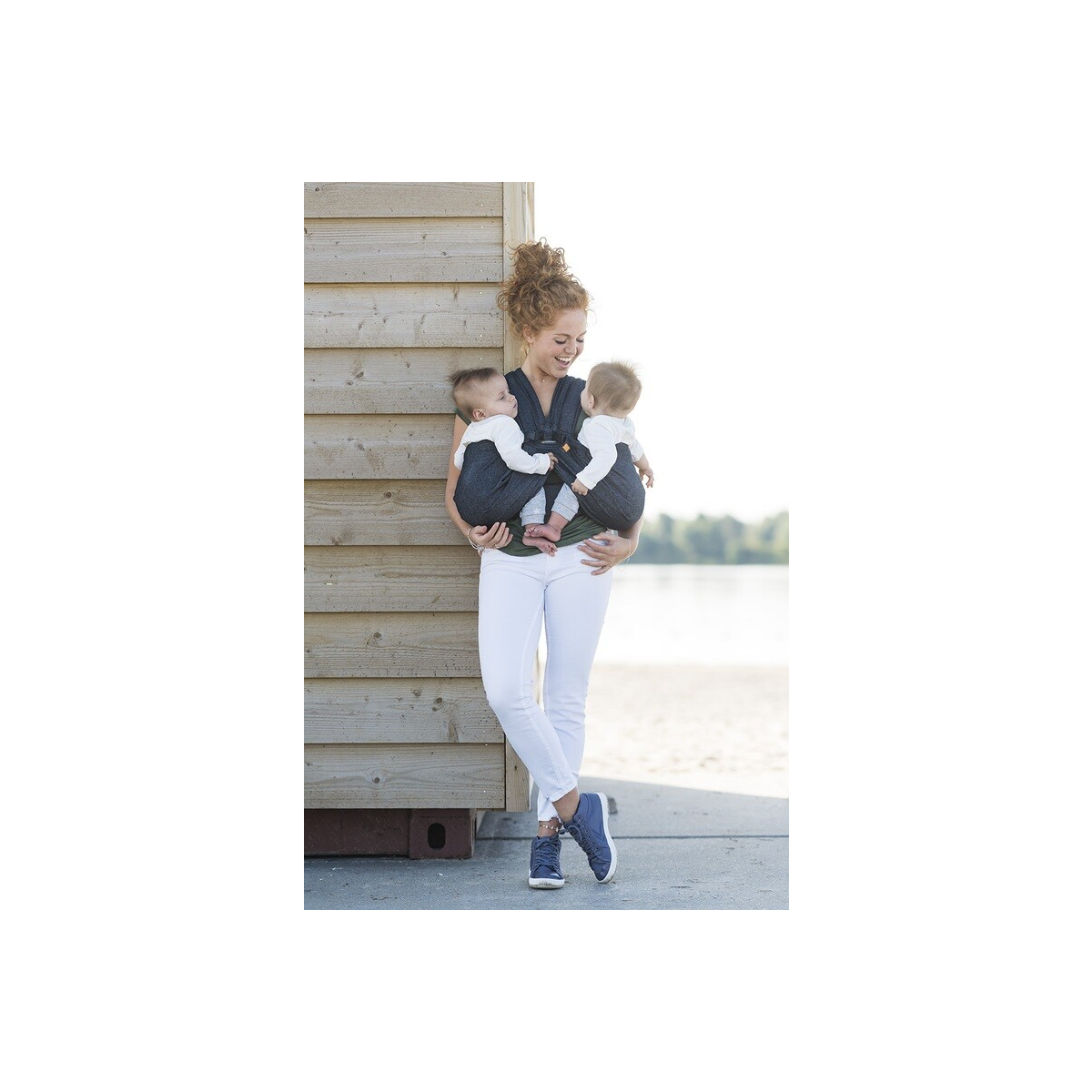 The Mini Monkey twin equals the ergonomic carrying way of a traditional wrap. Babies are carried in an upright position on your belly, with his or her bottom low and thighs higher and spread wide; also referred to as the M-Position or Frog Position. Suitable for both newborn and older babies (max 12kg each baby).